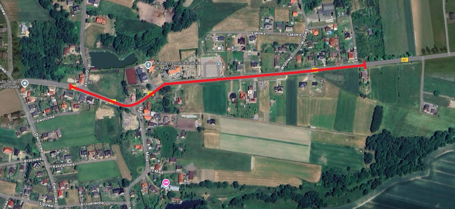 W dniach od 16 do 18 października 2025r. codziennie w godzinach od 7:00 do 20:00 nastąpi całkowite zamknięcie całej szerokości jezdni na odcinku oznaczonym kolorem niebieskim w Pilchowicach. Przedmiotowy odcinek będzie oddawany do ponownego użytkowania na bieżąco fragmentarycznie.
