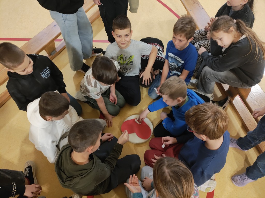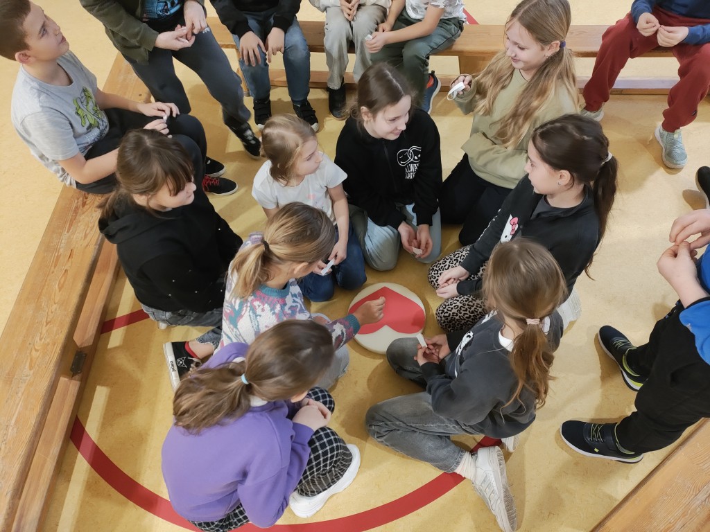 Nie zabrakło również słodkiego akcentu – cukierków z ukrytymi wróżbami, które wywołały wiele uśmiechu i radości. Uczniowie z entuzjazmem losowali także imiona chłopca i dziewczyny, co dostarczyło im wielu emocji i było źródłem dobrej zabawy. Całość dopełniły wesołe zabawy ruchowe, które sprzyjały integracji klasy i stworzyły miłą, andrzejkową atmosferę.