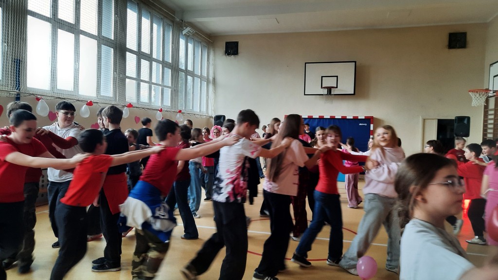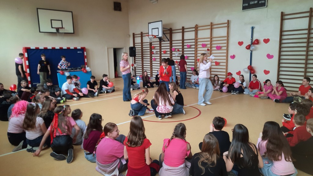 Dziś w naszej szkole odbyło się wyjątkowe spotkanie muzyczno-walentynkowe dla uczniów klas IV–VIII, zorganizowane przez Samorząd Uczniowski. Wydarzenie przebiegło w radosnej i pełnej pozytywnej energii atmosferze. Podczas spotkania uczniowie brali udział w różnorodnych zabawach muzycznych oraz konkursach, które dostarczyły wielu emocji i uśmiechu. Uczestnicy chętnie angażowali się w przygotowane atrakcje, wykazując się kreatywnością i poczuciem humoru. Dużym zainteresowaniem cieszyła się poczta walentynkowa, dzięki której uczniowie mogli przekazać sobie miłe słowa i wyrazy sympatii. To była doskonała okazja do okazania życzliwości i wzmocnienia koleżeńskich relacji. Na zakończenie na wszystkich uczestników czekał słodki poczęstunek, który umilił wspólnie spędzony czas.