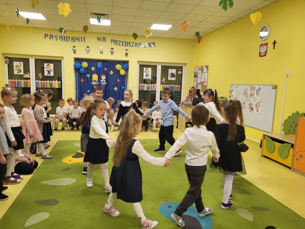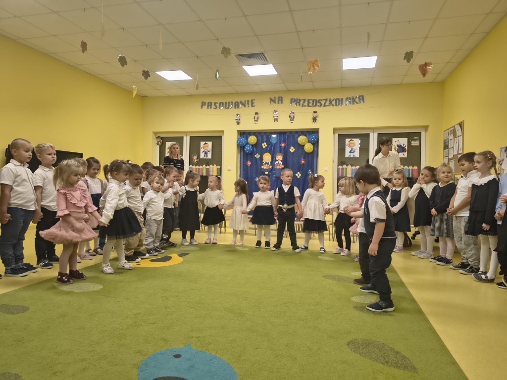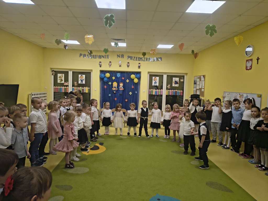 W naszym przedszkolu odbyła się uroczystość "Pasowania na Przedszkolaka". W tym wyjątkowym dniu każda z grup zaprezentowała krótki występ artystyczny, a następnie pani Dyrektor przyjęła do grona naszych przedszkolaków najmłodsze dzieci. Na zakończenie dzieci otrzymały pamiątkowe dyplomy oraz medale.