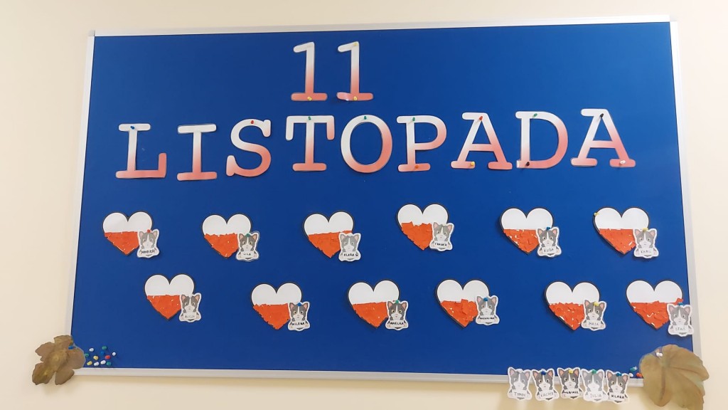 W naszym przedszkolu obchodziliśmy Narodowe Święto Niepodległości. Dzieci ubrane w odświętne stroje, z biało-czerwonymi kotylionami przypiętymi do piersi, z dumą odśpiewały o godzinie 11:11 nasz hymn narodowy. Każda z grup wykonała również prace plastyczne związane z naszą ojczyzną. Była to piękna lekcja patriotyzmu i wspólnego świętowania.