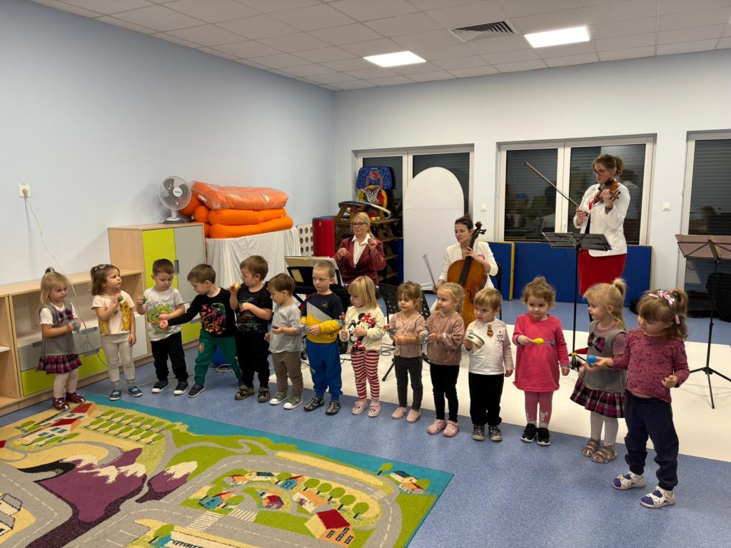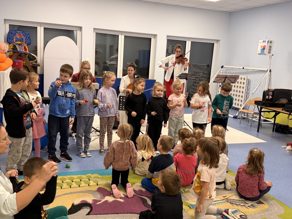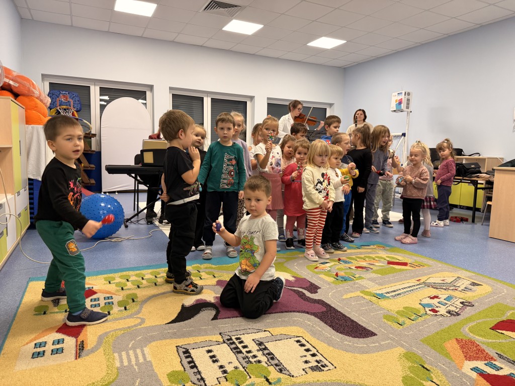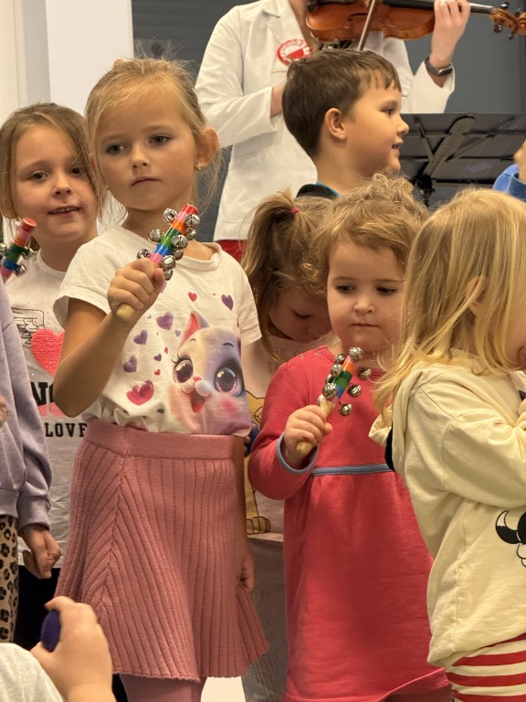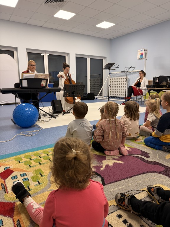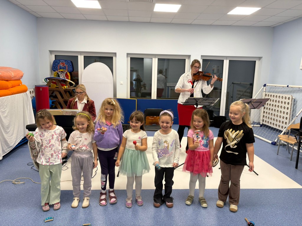 W naszym przedszkolu odbyła się audycja umuzykalniająca. Była to okazja do wysłuchania muzyki na żywo. Dzieci zapoznały się z różnymi instrumentami: organami, klarnetem a także wiolonczelą. Mogły przyjrzeć im się z bliska oraz poznać ich wyjątkowe brzmienie. Każde z dzieci wzięło również aktywny udział poprzez grę na mniejszych instrumentach perkusyjnych. To było wyjątkowe wydarzenie!