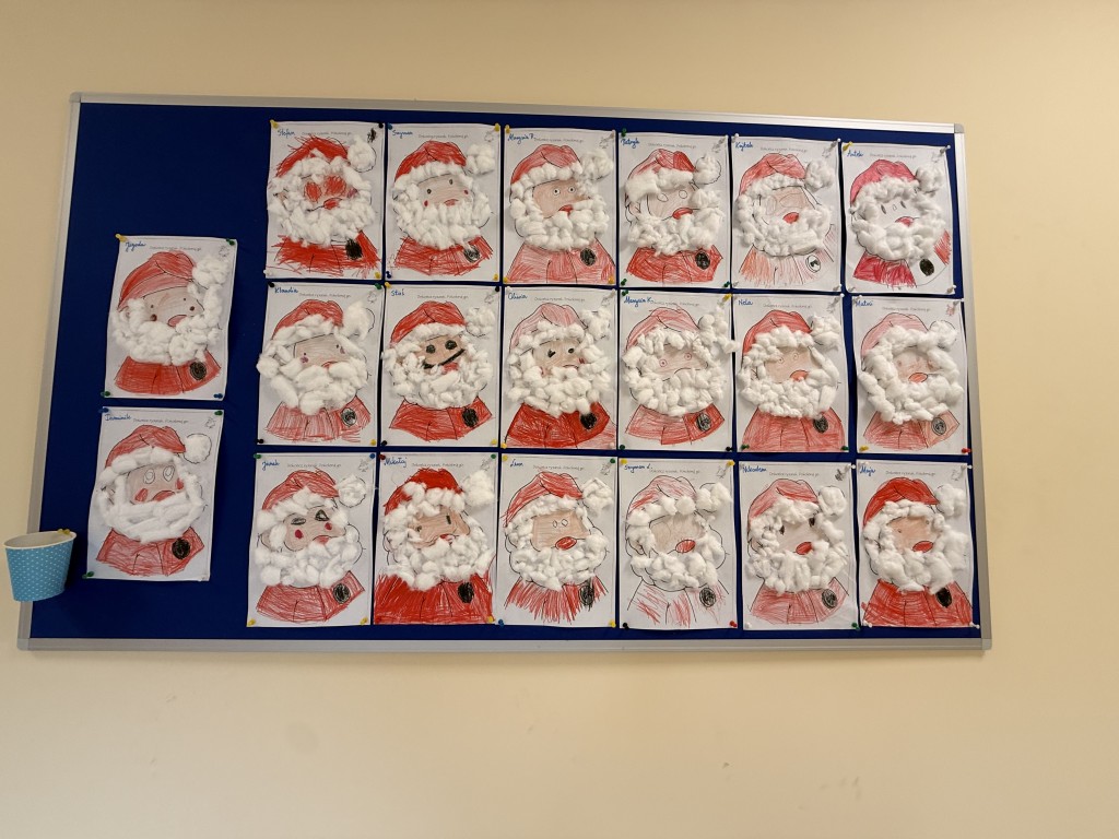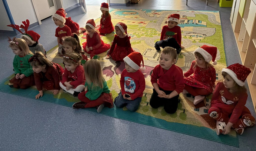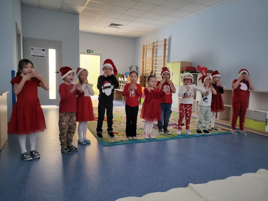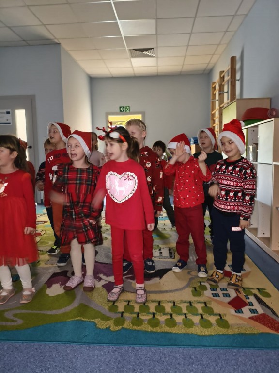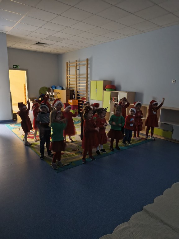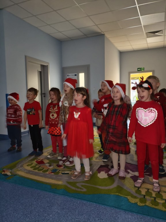 Dziś nasze przedszkole odwiedził wyjątkowy gość- Święty Mikołaj! Zanim wręczył dzieciom wyczekiwane upominki, każda z grup zaśpiewała mu świąteczną piosenkę. Mali artyści byli bardzo zaangażowani, a Mikołaj nie krył zachwytu ich występami. Spotkanie było pełne radości i uśmiechów, na długo pozostanie w naszej pamięci!