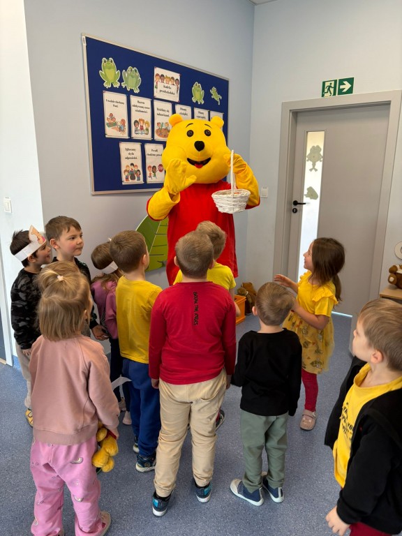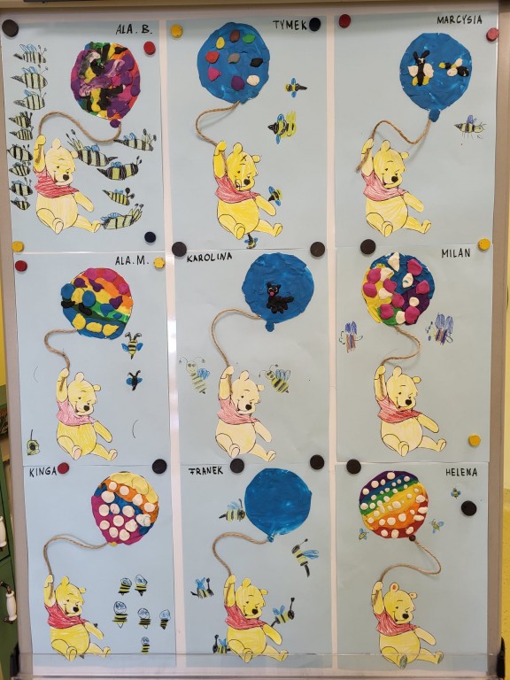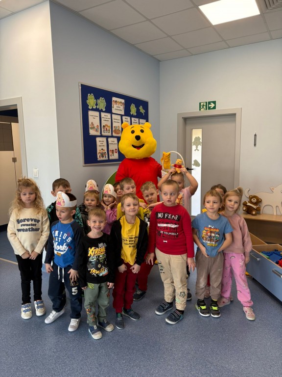 W naszym przedszkolu obchodziliśmy Dzień Kubusia Puchatka. Dzieci przyniosły swoje ulubione maskotki bohaterów z Stumilowego Lasu, wysłuchały fragmentów książki o przygodach Kubusia i jego przyjaciół, a także z wielkim zaangażowaniem wykonały prace plastyczne. Tego dnia panie kucharki zadbały o to, aby każdy przedszkolak mógł skosztować ulubionego przysmaku Puchatka- miodu.